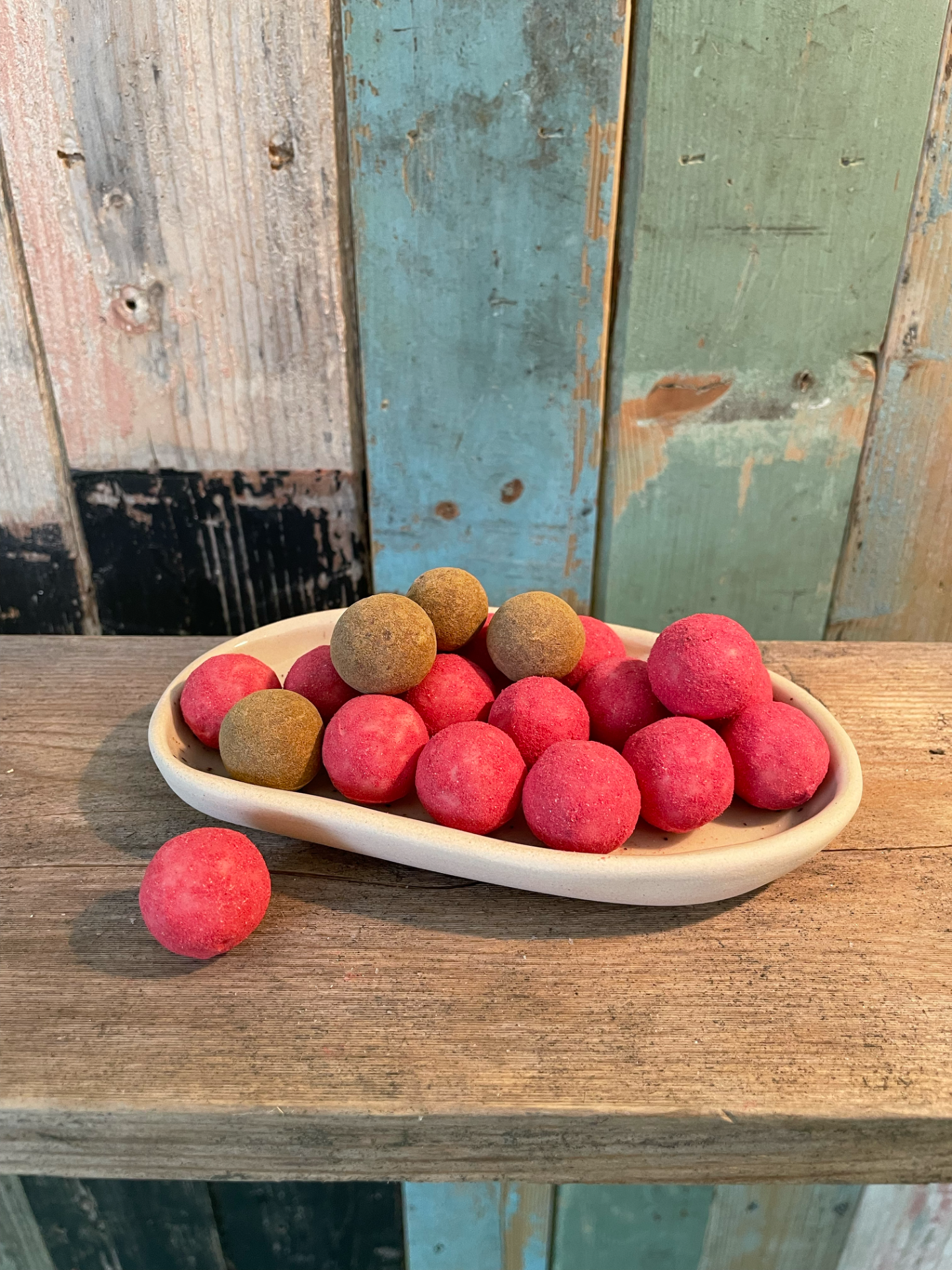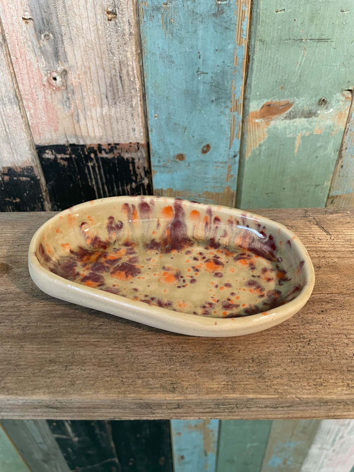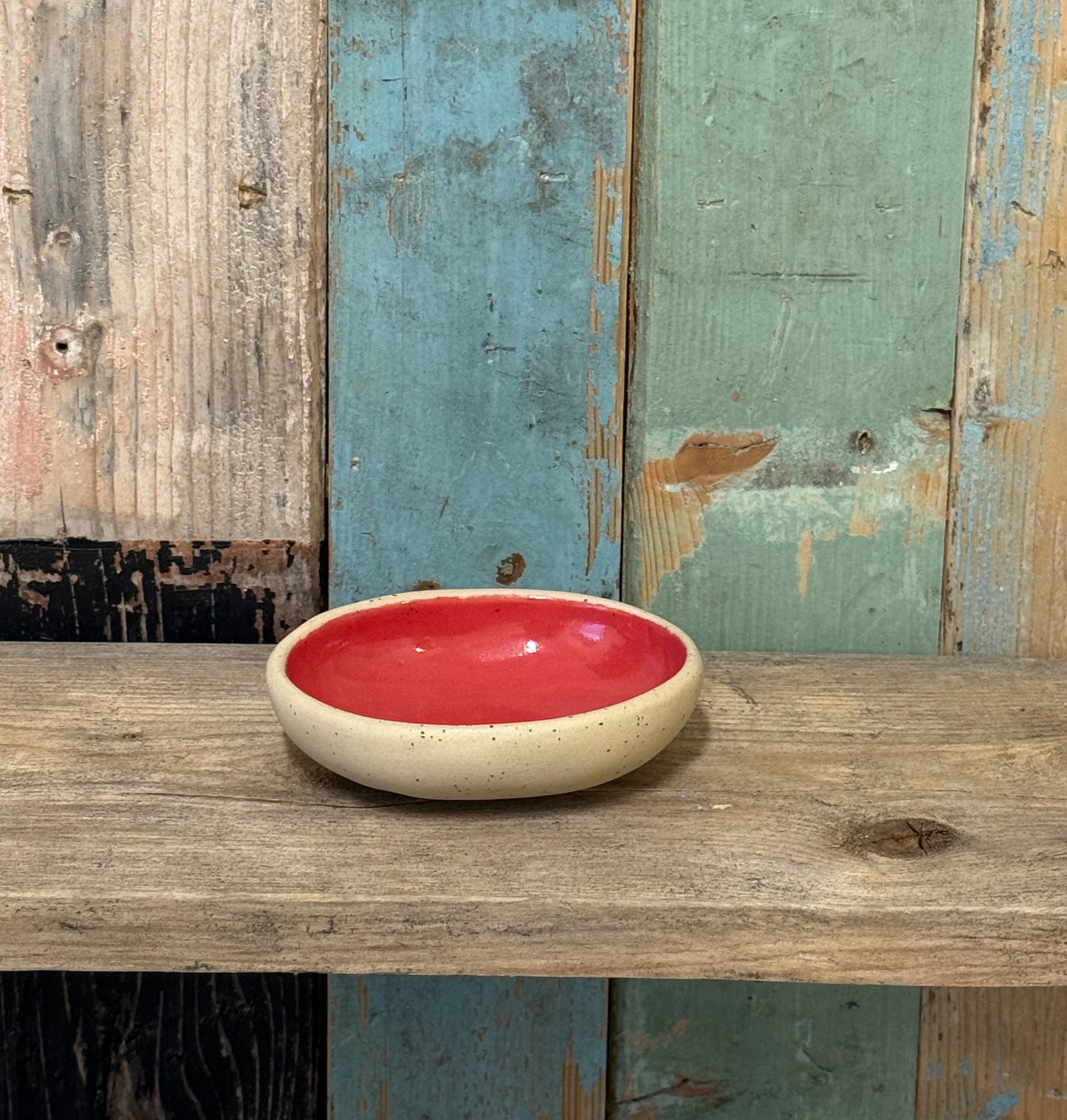 Hver skål kan variere noe i størrelse og form da alle er unike og håndlaget. Omtrentlig størrelse er 15 x 8 cm. Tåler oppvaskmaskin, men håndvask anbefales. Finnes i fargene natur med spetter, hvit med spetter og rød-orange.