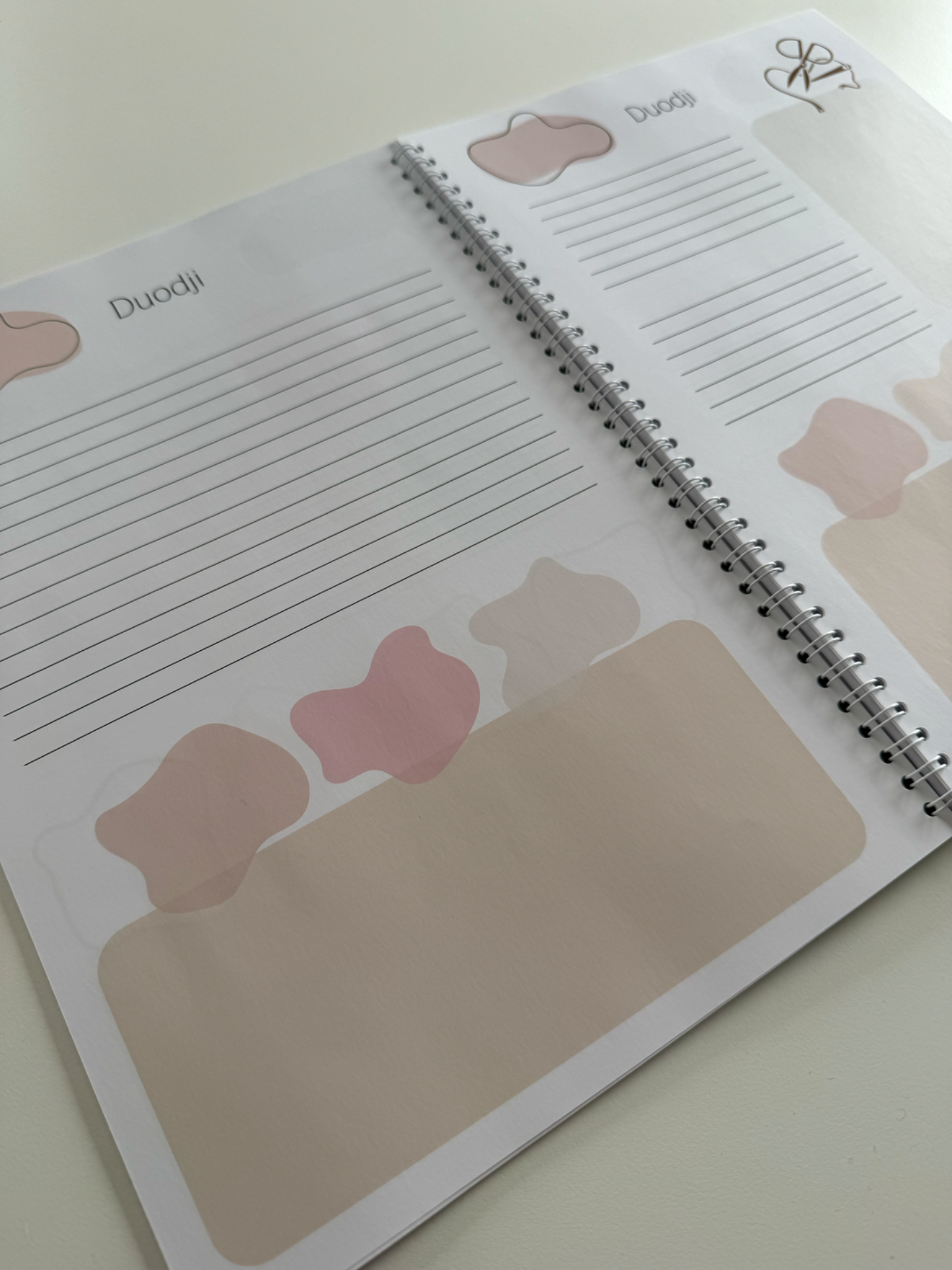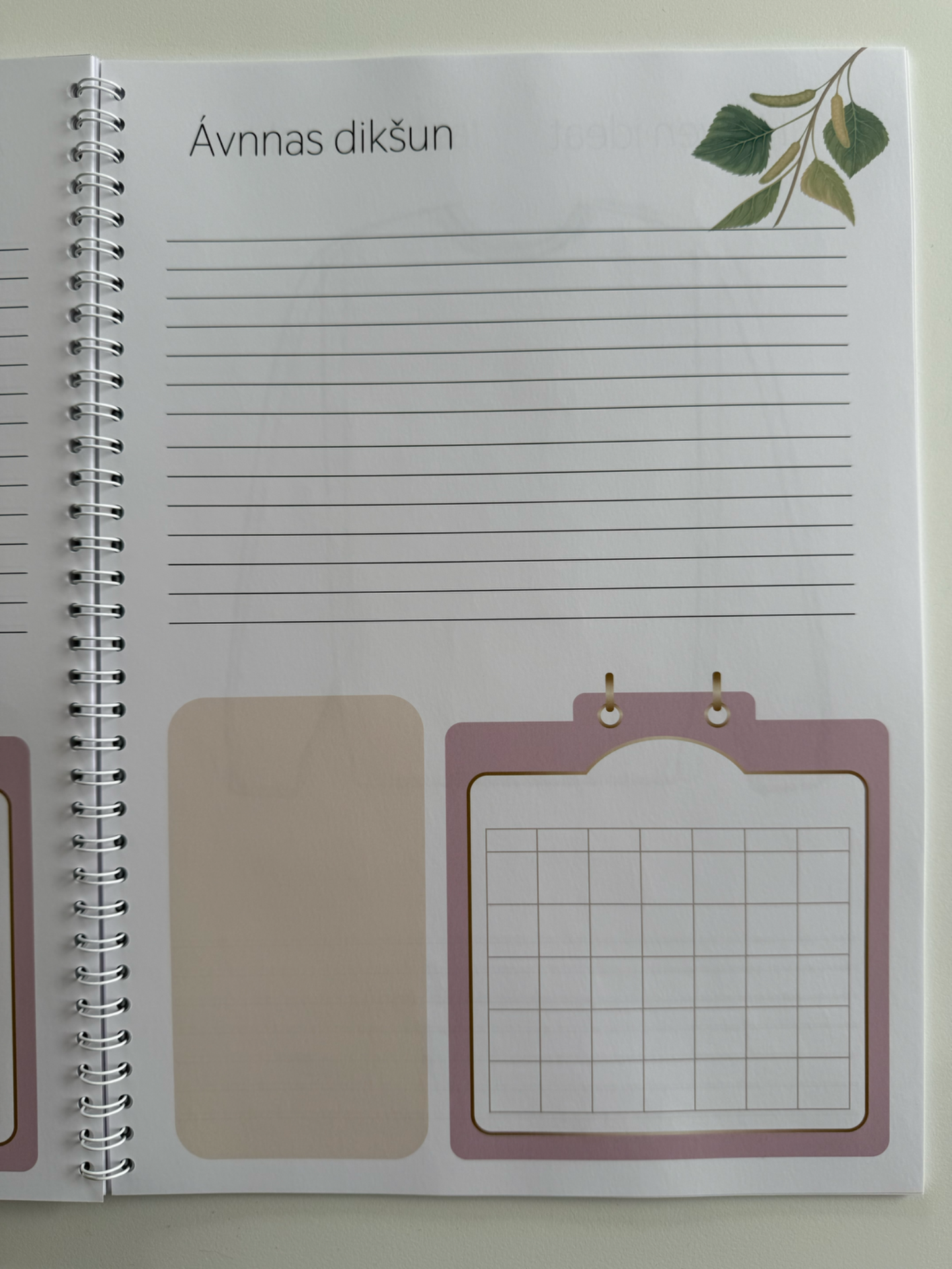 Mu duodjegirji er en skrivebok der du samler egne duodji notater. Skriveboka er på nordsamisk med 92 sider i A4 størrelse. I boka kan du tegne, skrive, notere mål og du tilpasser notatene etter eget duodjiarbeid.
